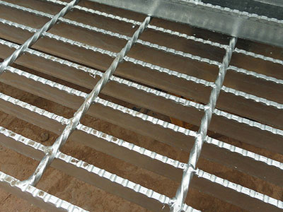 熱鍍鋅格柵板是由負載扁鋼和橫桿按一定間距經緯排列,在高壓電阻焊機上焊接而成原板,經切割、切口、開孔、包邊等工序深加工而成客戶要求的成品。